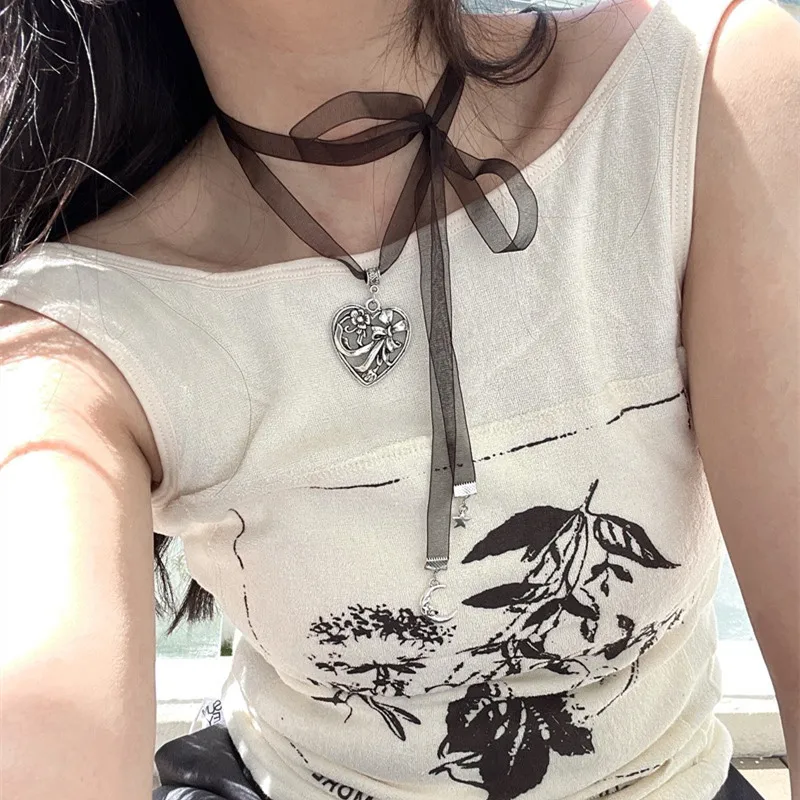 Hyperbole Punk Irregular Heart Flower Star Moon Vintage Pendant Lace Chains Choker Necklace Jewelry Women Y2k 2000s Accessories