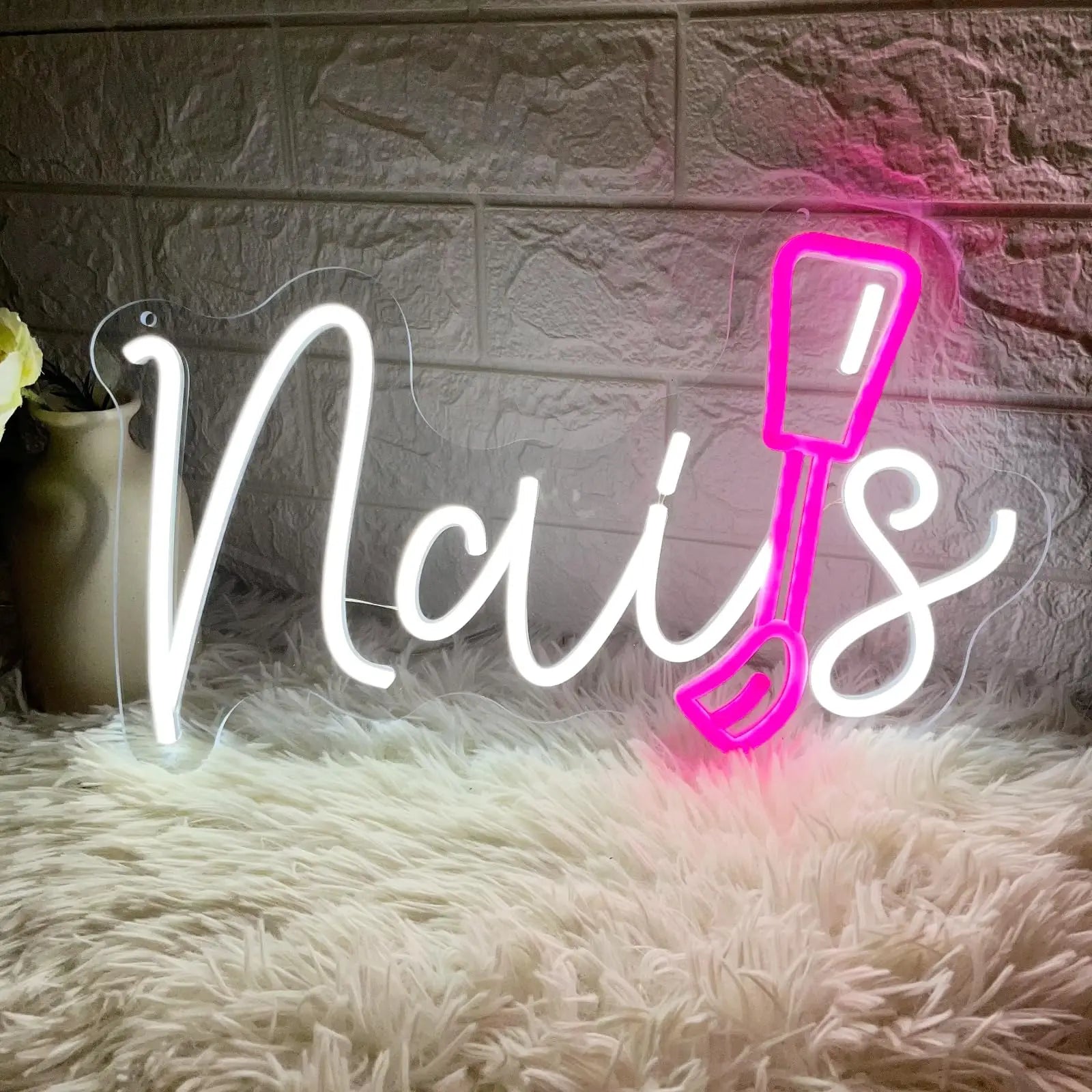 Nails Neon Sign Led for Wall Decor Beauty Salon Up Sign for Business Nail Room Spa Studio Bedroom Dorm Dimmable Usb Powered